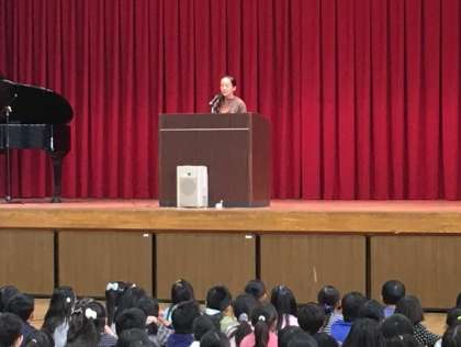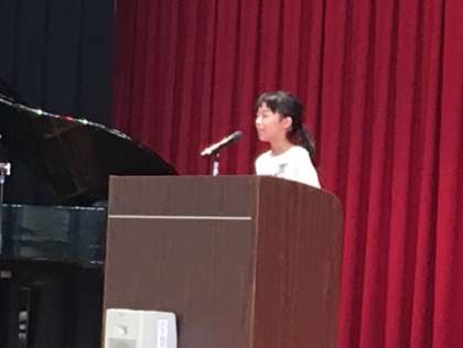 10日(金)の午後にサーティホールで行われる「大東市小中学生弁論大会」に出場する5年生の高宮さんと6年生の余田(よでん)さんが、全校児童の前で弁論発表のリハーサルを行ってくれました。弁論大会当日も、今日のように堂々と実力を発揮してほしいですね。