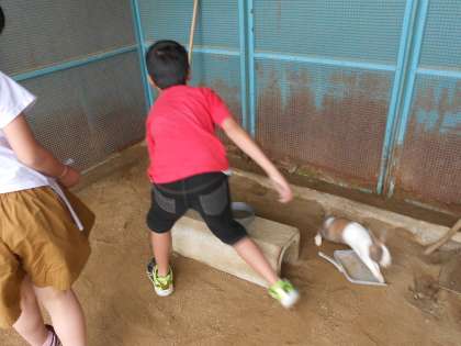 今日は20分休みに、5年生の飼育委員がうさぎのお世話をしていました。ご苦労様です。