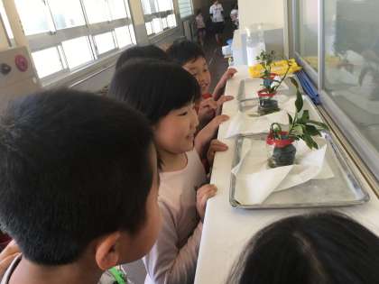 3年生の廊下で育てているアオムシですが、とても成長が早くびっくりしています。