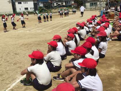 写真は2年生の演技を見守る5年生です。