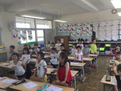 1組の皆さんは、とても積極的に手をあげていました。2組の皆さんは、大きな声で音読を聞かせてくれました。みんなよく頑張っています!