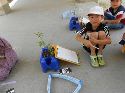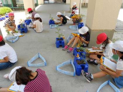 3時間目、2年1組が中庭でミニトマトの観察をしていました。ていねいなスケッチの人が多かったです。