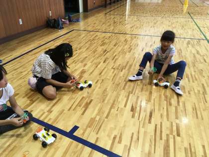 4年生では、回路や電流の流れを、実験しながら学習しています。各自で作成したモーターカーですが、プロペラがうまく飛ばなかった人も続出しました。