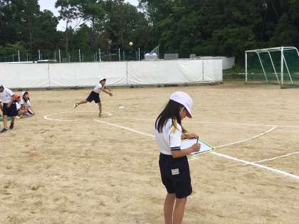 低学年に続き、中学年もスポーツテストです。低学年との違いは50m走とソフトボール投げが増えます。