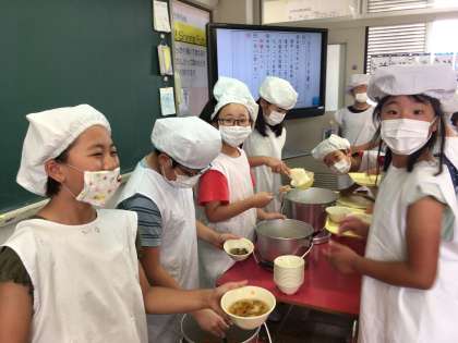 給食の様子です(5年1組)