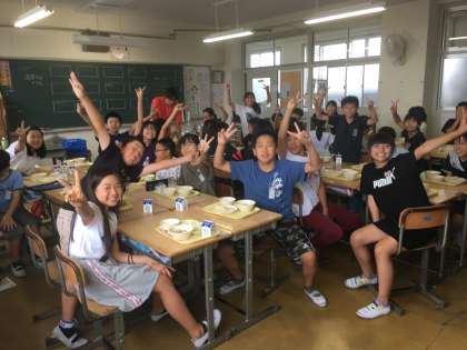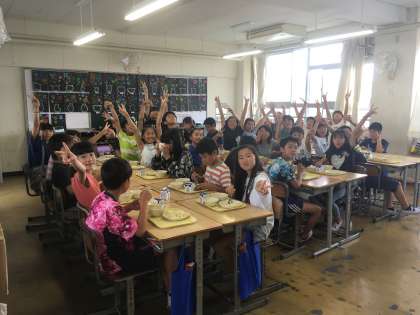 今日の献立はジャガイモのスープ煮、えびピラフ、ボイルキャベツ、牛乳でした。今日も人気メニューの一つですね。