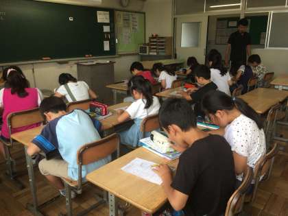 氷野小学校では、6月10日からお互いの授業を公開しあって授業力を高める取り組み(授業力UPきらきら月間)を実施しています。今日は河盛先生の授業を参観しました。