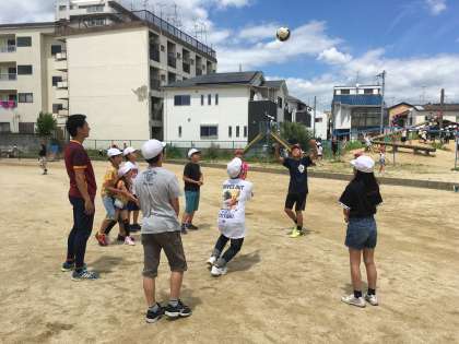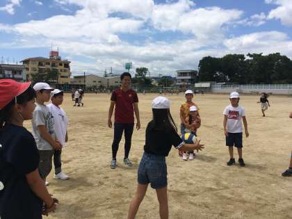 昼休み、担任の先生と一緒に遊んでいる6年生を見つけました。