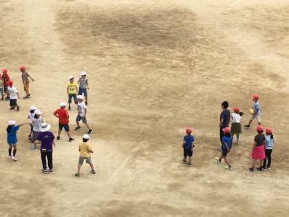 4階から撮影しました。分かりにくいですが、先生たちも一緒に遊んでいます。