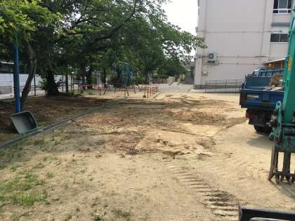 今日、大東市教育委員会の総務グループから作業に来ていただき、綺麗に撤去しました。