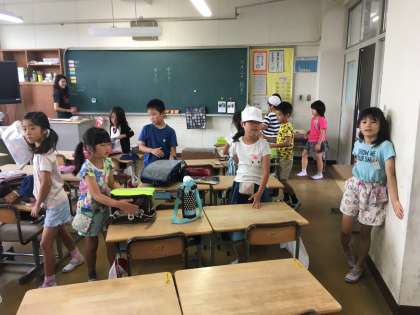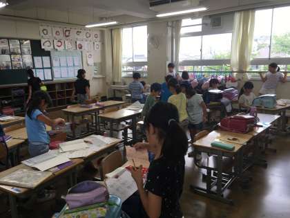朝の準備をしている2年生におじゃましました。元気いっぱいのあいさつをしてくれました。