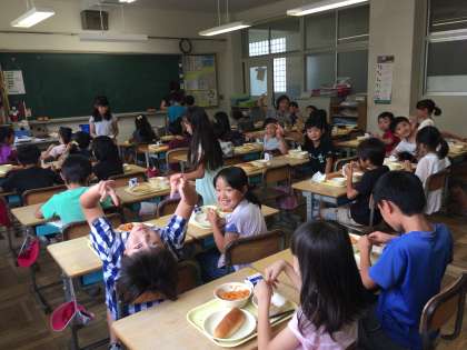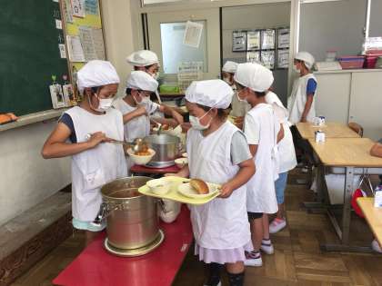 3組の様子です。今日のスパゲティは美味しかったですね。
