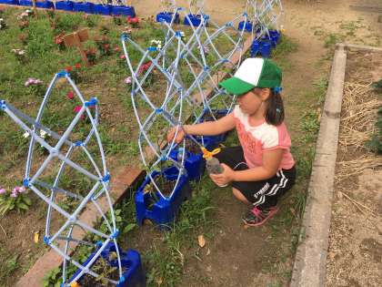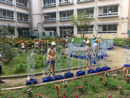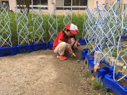 今日も中庭が朝からにぎやかです。