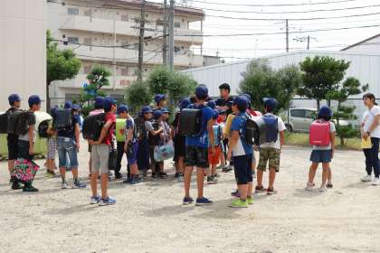 各地区で先生からの注意や話を聞いた後、集団下校を行いました、