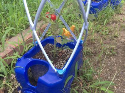 2年生のミニトマトが赤くなってきました。たくさんの2年生が教えてくれます。