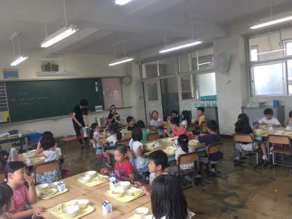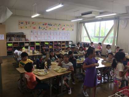今日の献立は、カレーピラフ、ポトフ、オレンジパンチ、牛乳でした。今日も子どもたちに人気のメニューです。