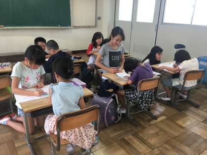 1年生の学習会に、担当先生の補助として6年生が入ってくれています。とても優しいお兄さん・お姉さん先生です。