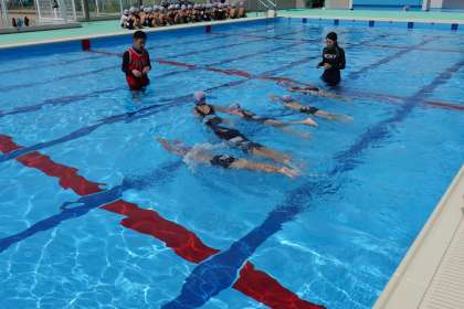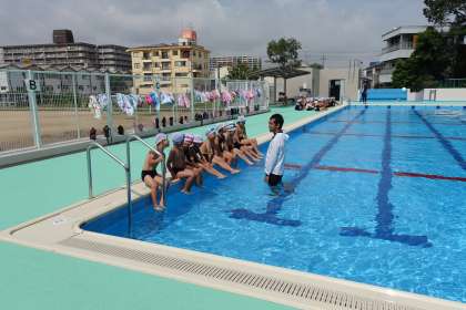 昨日は雨でプールに入れませんでしたが、今日は入水できました。よかったですね。