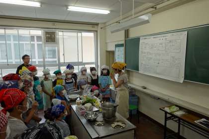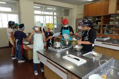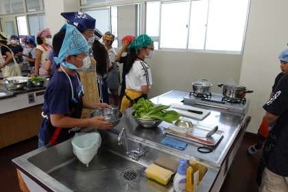 昨日に引き続き、チンゲン菜を使った調理実習です。