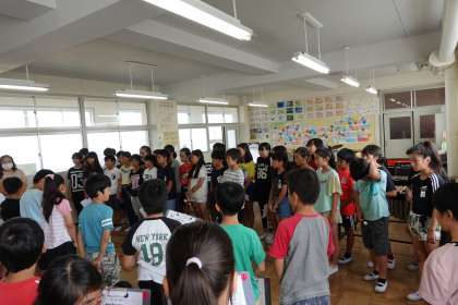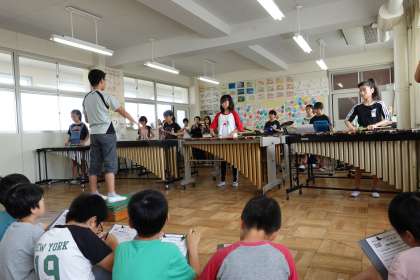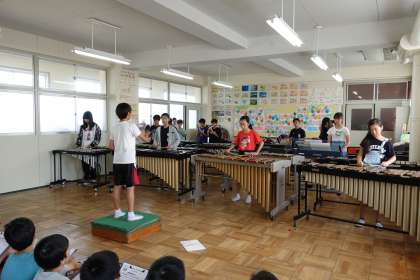 6年生の演奏を5年生が聞いています。自分の意見を発表する力は、6年生に負けていません。
