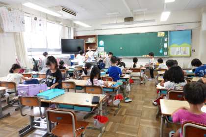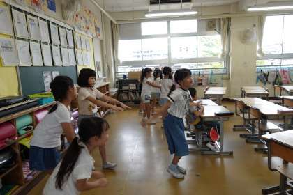 1年生と2年生の教室を回ってみました。2年3組では朝からダンスをしていました。元気ですね!