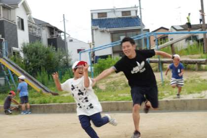 20分休みの様子です。香川先生が子どもたちと鬼ごっこをしていました。