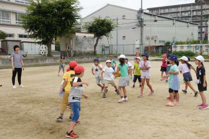 蒸し暑いですが、たくさんの子どもたちが外で遊んでいました。