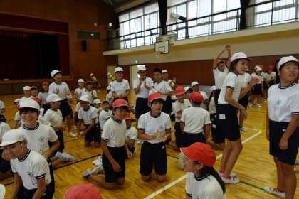 体育館は、6年生の熱気でとても暑いです。