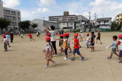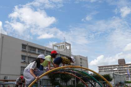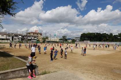 まだまだ暑いですが、秋の空になってきたような気がします。今日も大勢の子どもたちがグラウンドを走り回っていました。
