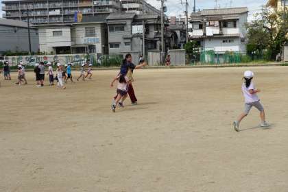 今日も多くの先生たちがグラウンドに出てきてくれています。教育実習の先生たちも遊んでくれています。