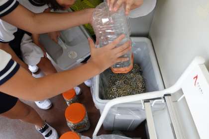 2年1組が、集まったプルトップを職員室前に持ってきてくれました。ありがとう。