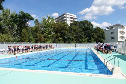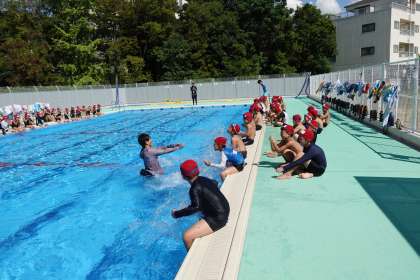3年生は、今日で今年度のプール指導が終了しました。まるで真夏のプールサイドでした。