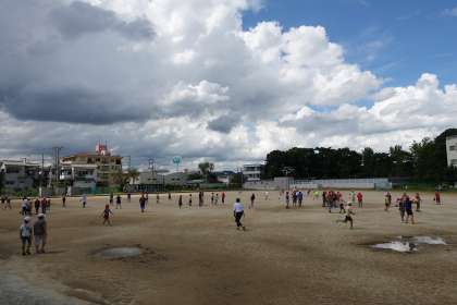 相変わらず蒸し暑いグラウンドです。よく遊ぶ子どもたちです。
