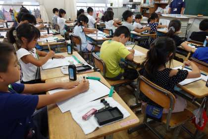 3年生が書道の授業をしていました。