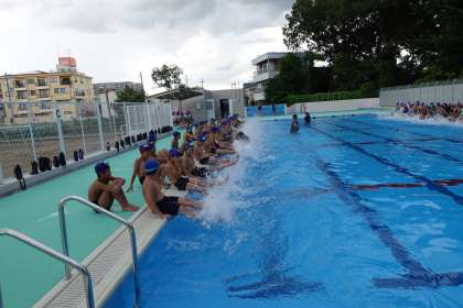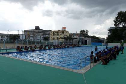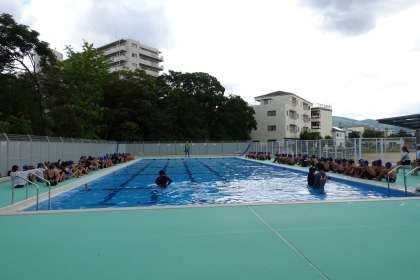 6年生最終のプール指導。小学校でのプール最終となります。完成間もない、とてもきれいなプールに入れてよかったですね。