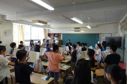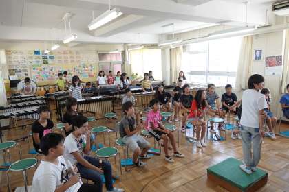 6年生の授業を参観しました。1組は音楽室で合奏の練習をしていました。2組は国語で、音読をしていました。3組は算数のテスト中でしたので、写真撮影は控えました。