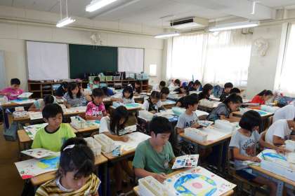 図工の授業でした。こちらも6年生らしい、しっかりした作品ばかりです。