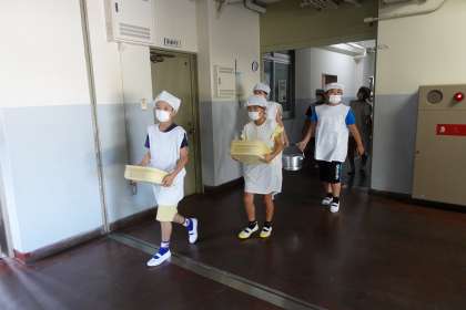 今日の献立は、ビビンバ、ごはん、たまごトック、牛乳です。