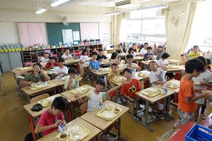 給食中の4年1組です。
