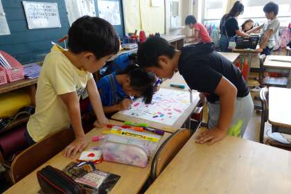 4年3組が、「わくわく祭り」の準備をしていました。「内容はみんなが知っているから撮影しても大丈夫です。」とのことで、撮影許可をもらいました。