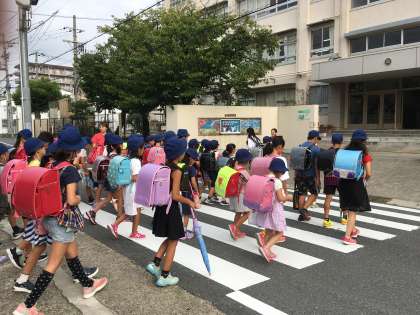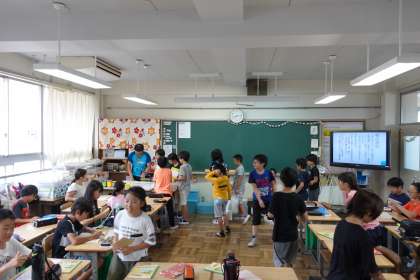 写真は朝の準備をする5年1組です。