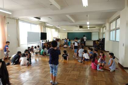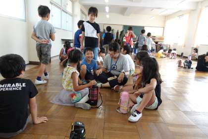 2年生は、2時間目が体育でした。クールダウンのため、冷房がよく効く多目的室で休憩中です。