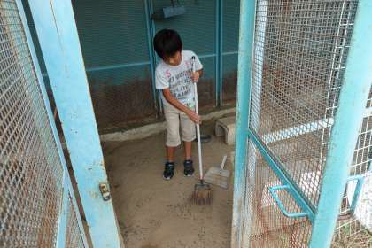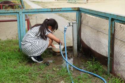 お昼休みに、飼育委員さんがウサギの世話をしてくれていました。今日の写真は「ラピ」です。