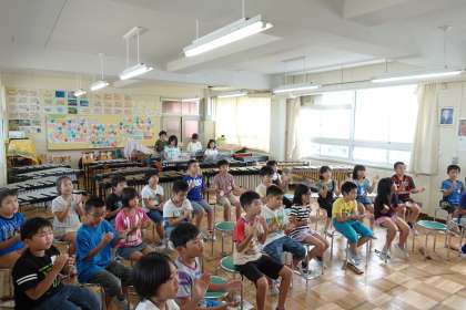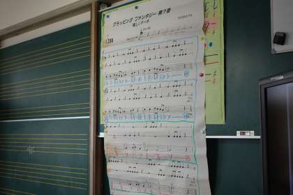4年2組の音楽を参観させていただきました。クラッピング(手拍子での音楽表現)を練習していました。久しぶりに、校長先生もピアノで参加させていただきました。楽しかったです。