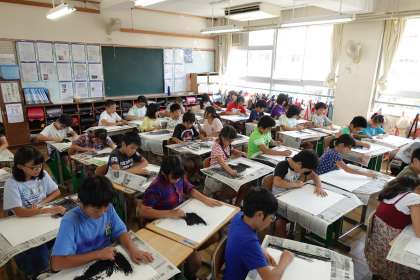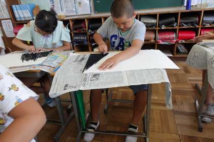 5年2組の授業です。みんな真剣な表情でよく頑張っています。