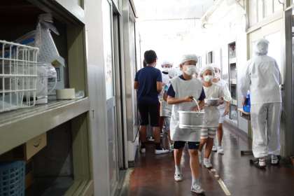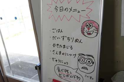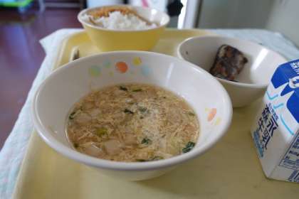 今日の献立は、大豆ちりめん、サンマの煮つけ、ご飯、かきたま汁、牛乳です。