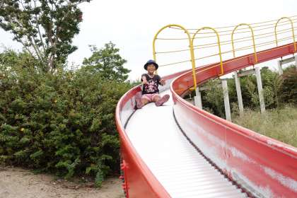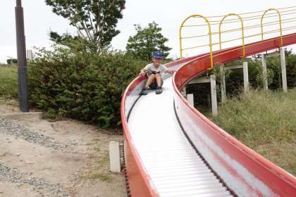 ローラー滑り台の続きです。萩森先生も滑っています。