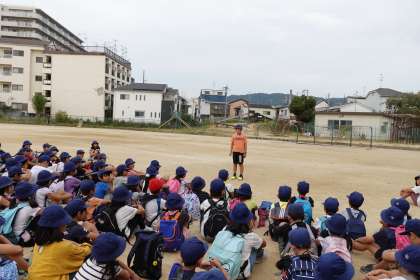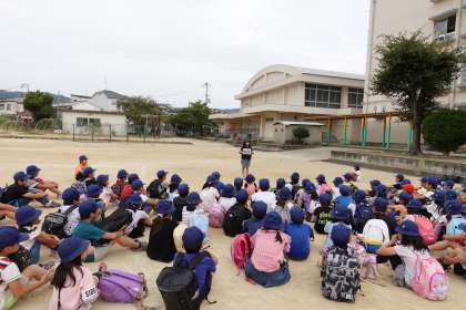 学校へ到着しました。解散式の様子です。