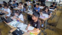 2階の廊下がとても静かで人の気配を感じません。そっと覗いてみると2クラスともテス...