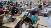 2年生はタブレットPCを使って「隠れた生き物クイズ」を作っていました。見せ合う時...